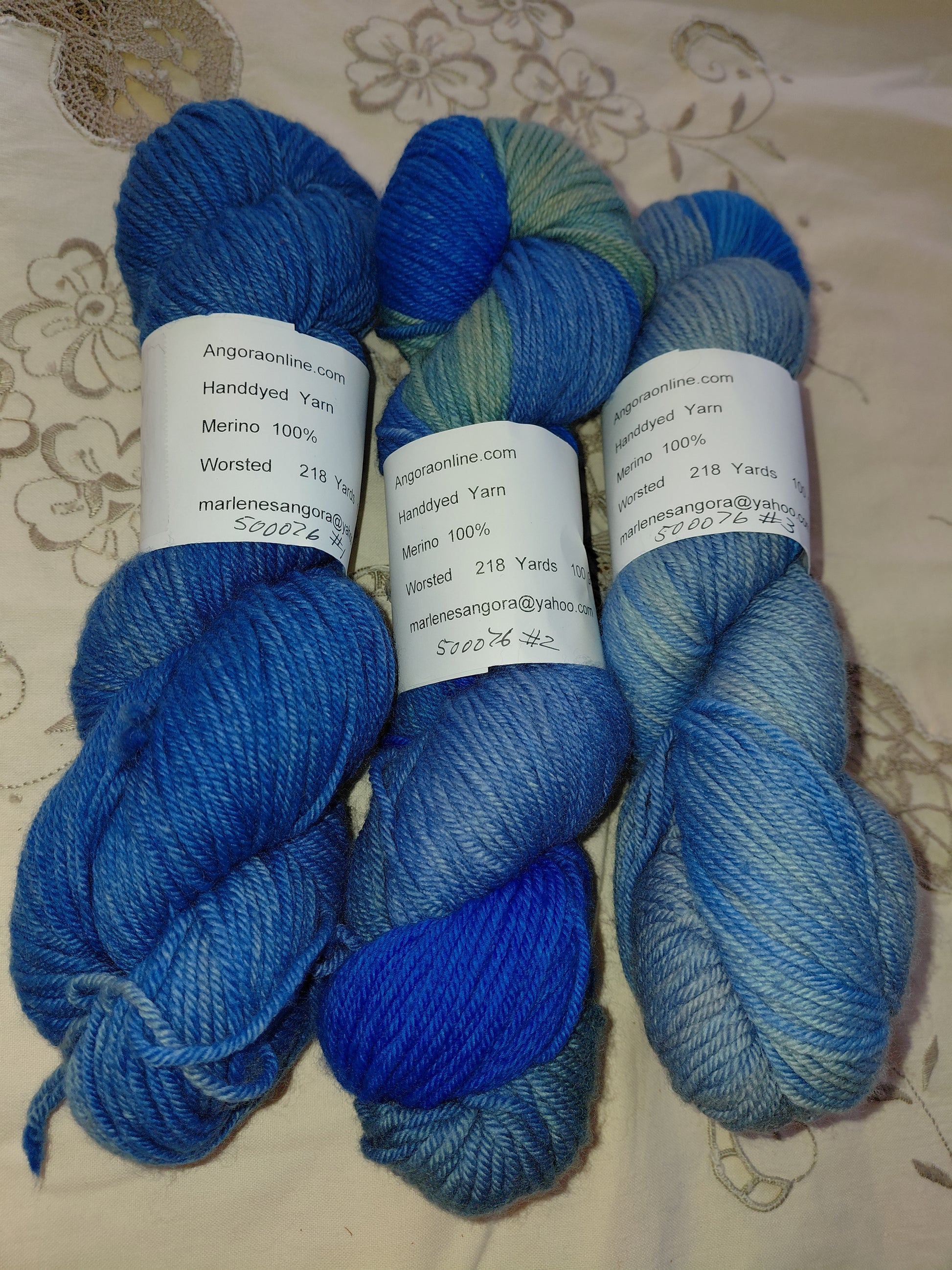 - Skein #2: Blue, light blue, soldier blue, and silver gray blend