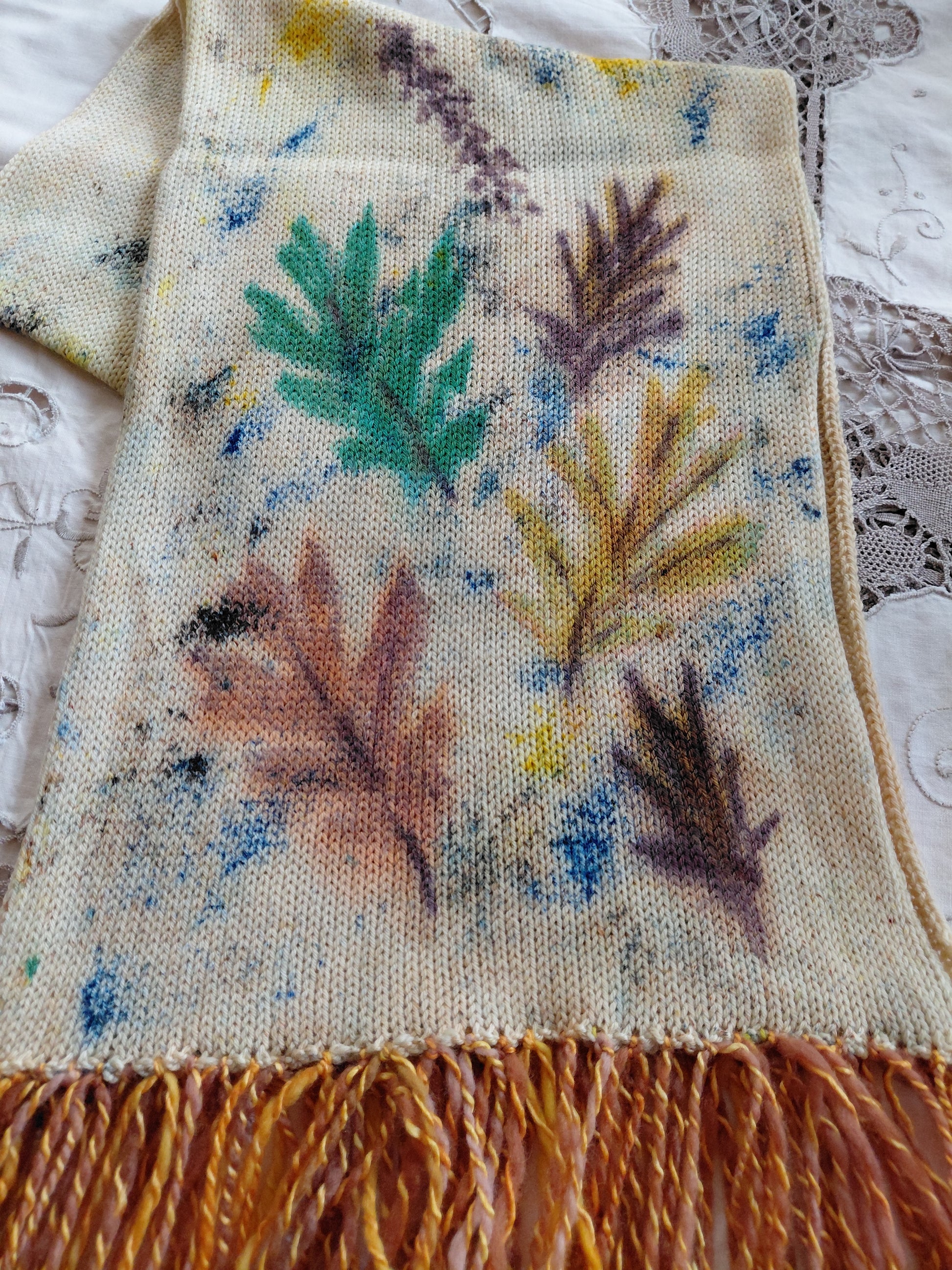 Hand Painted Merino Scarf - Autumn Oak Leaves