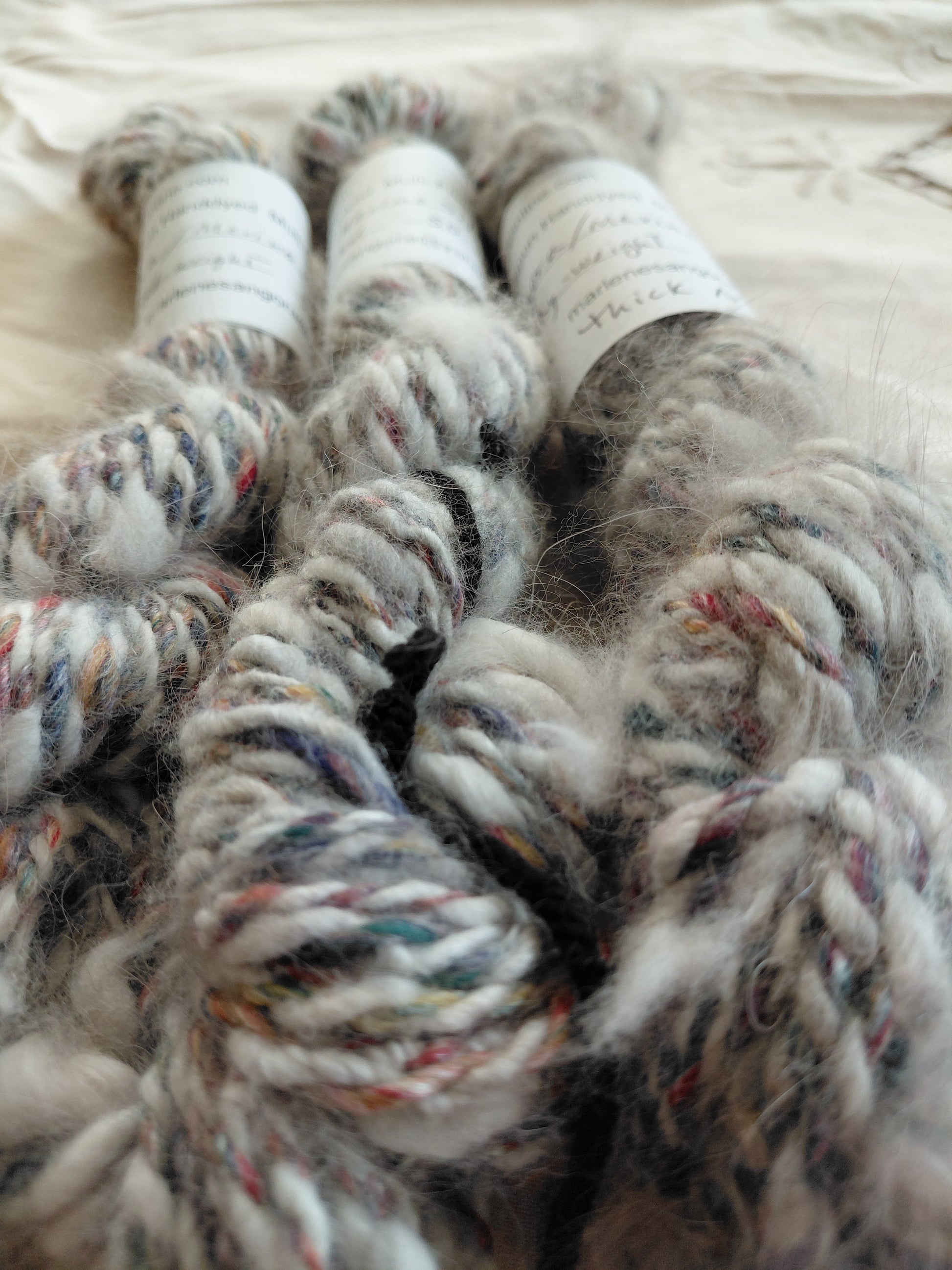 Luxurious handspun angora, merino, and silk yarn in fall-inspired hues